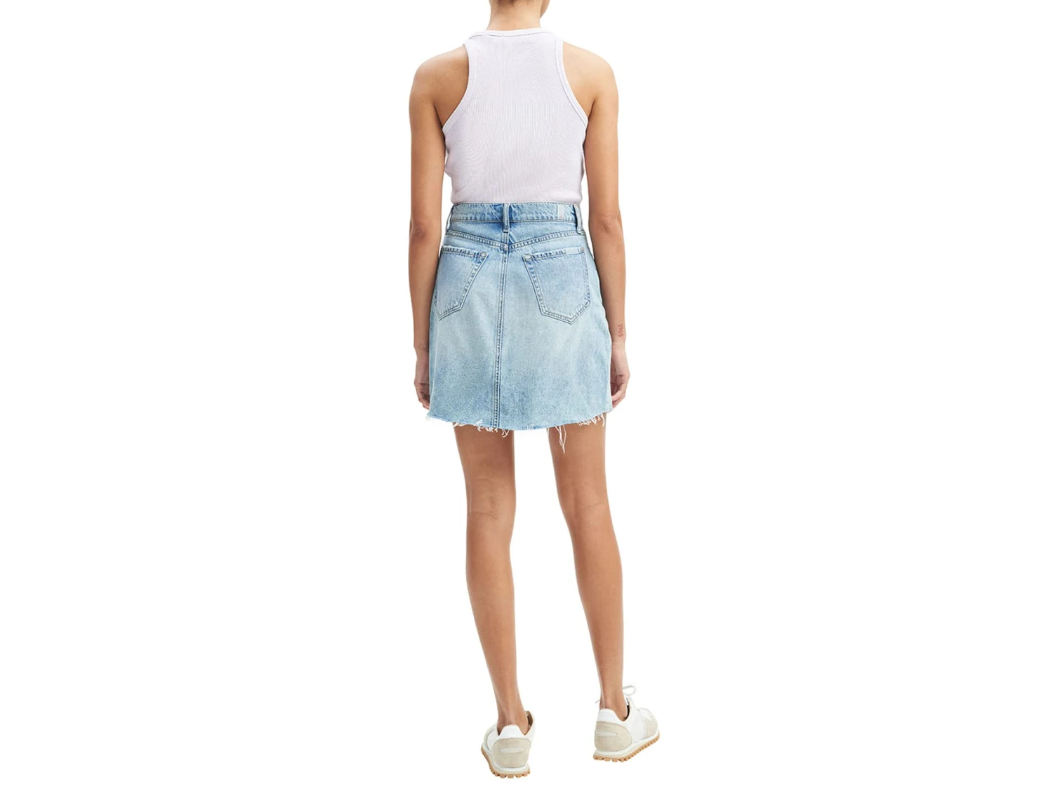 - Frayed hemline.
