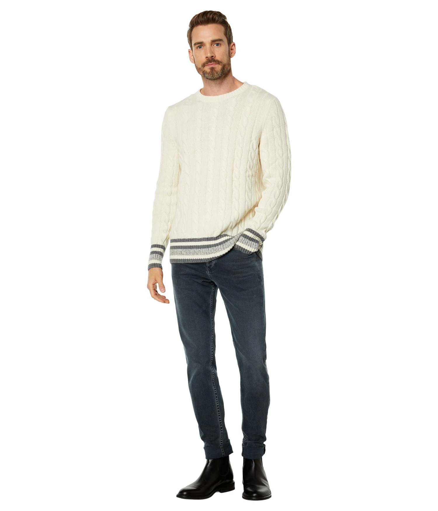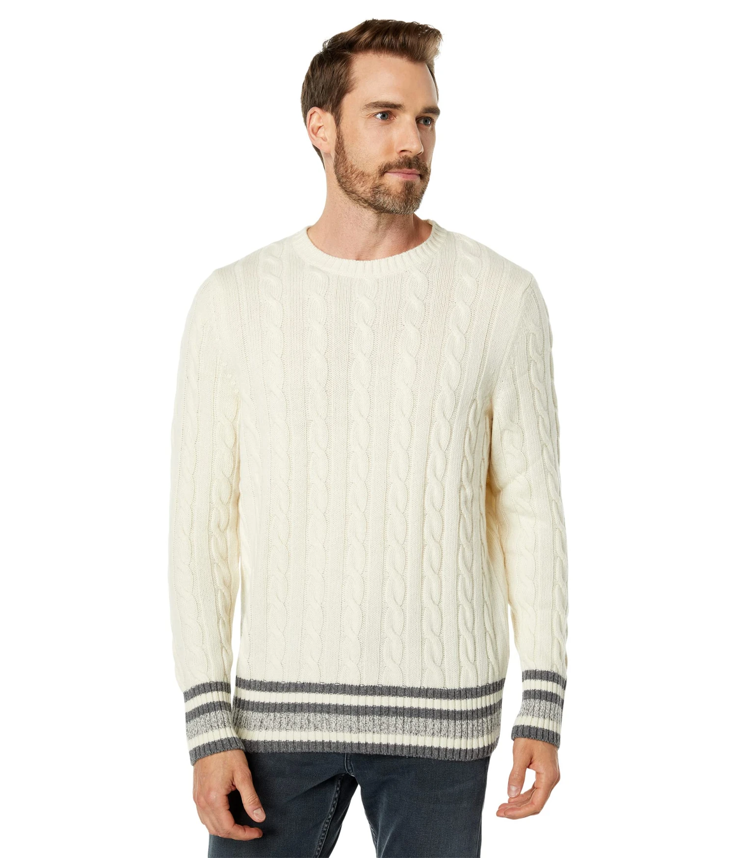 - Crafted using a blend of soft fabrics, the BENSONâ„¢ Aspen sweater features a cable knit pattern to give an aesthetic feel.
