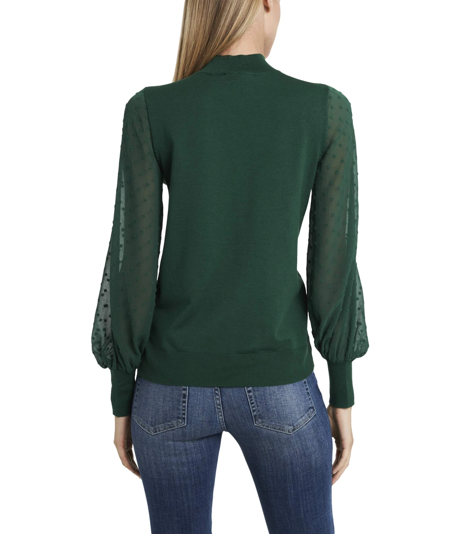 - Elevate your style in the CeCe™ Long Sleeve Mock Neck Clip Sleeve Sweater thanks to its mesh Swiss-dots trim at sleeves and feminine silhouette.