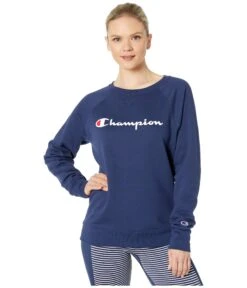 - Rep a classic with this poly-blend Champion® Powerblend Graphic Boyfriend Crew sweatshirt.