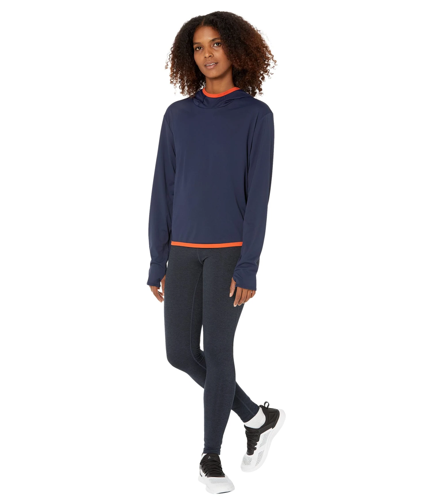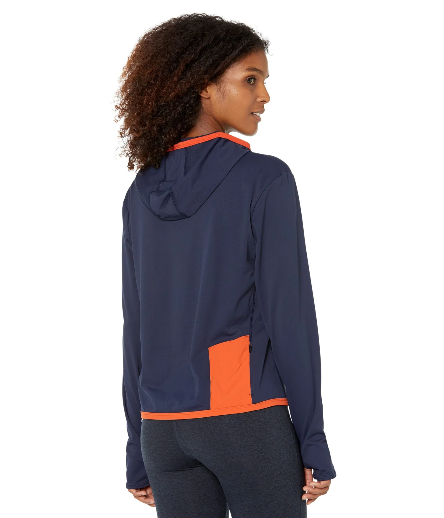 - Sleeves and hood feature contrasting self-binding.