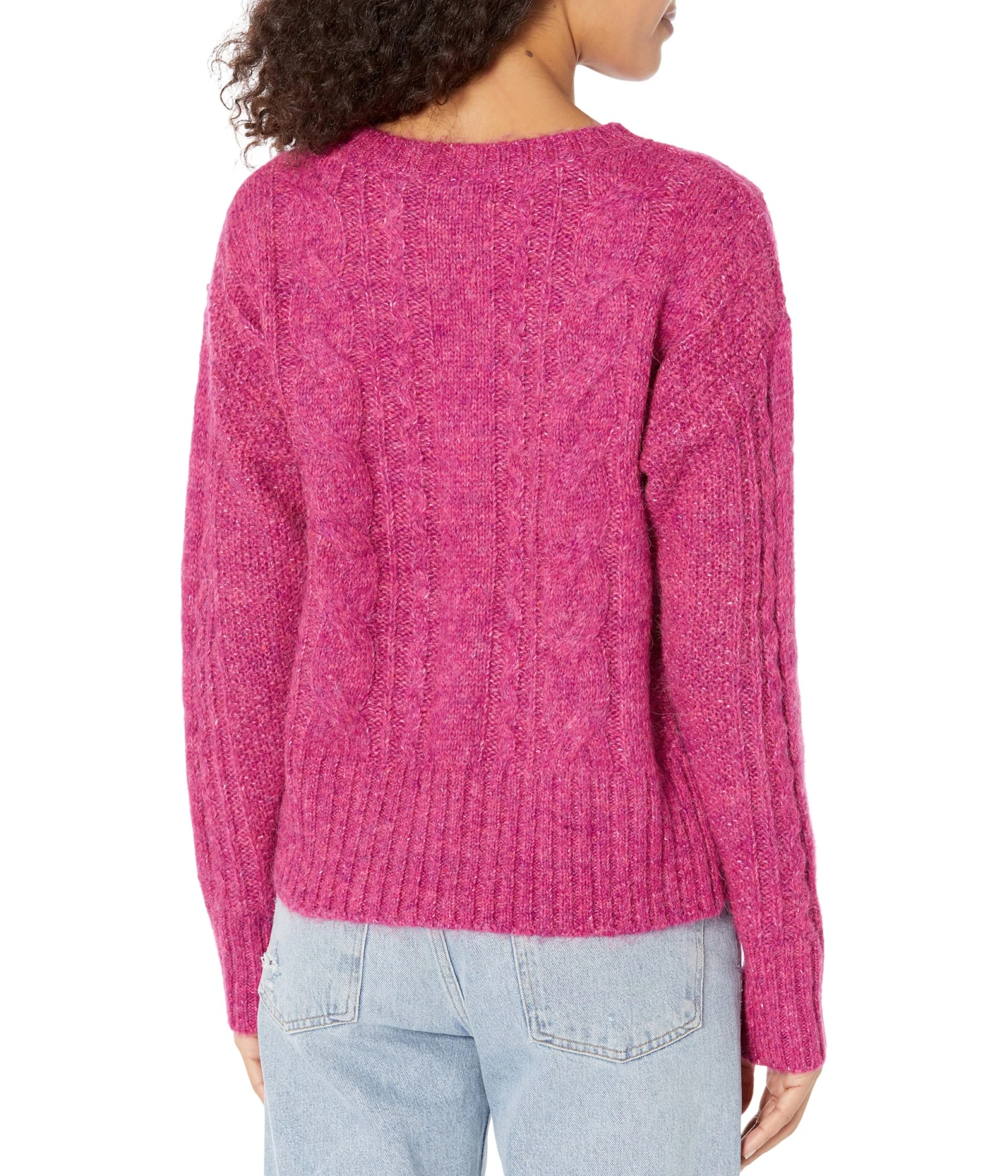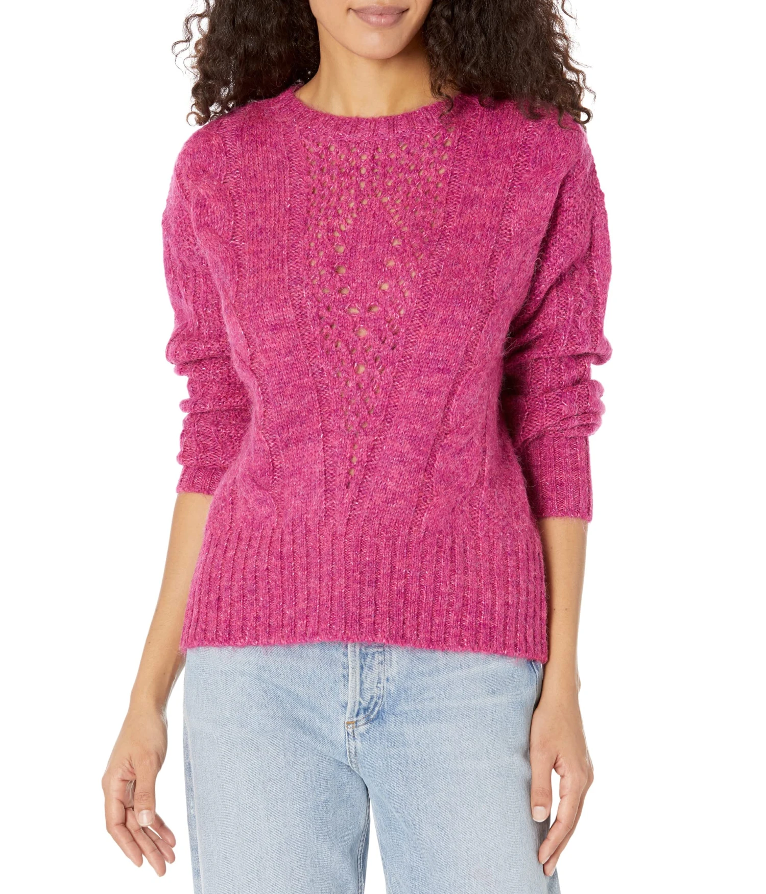 - Airy open stitching and cable design.