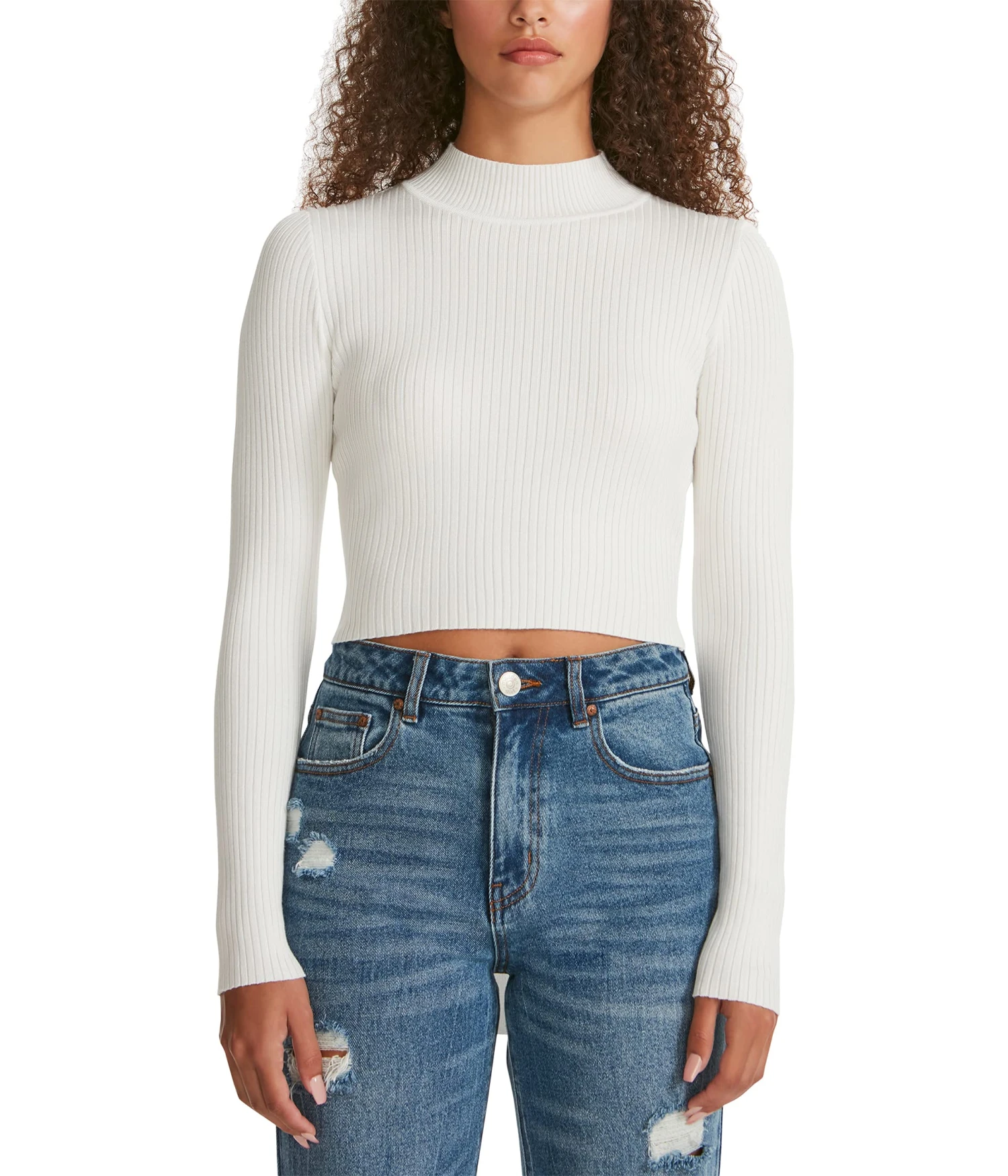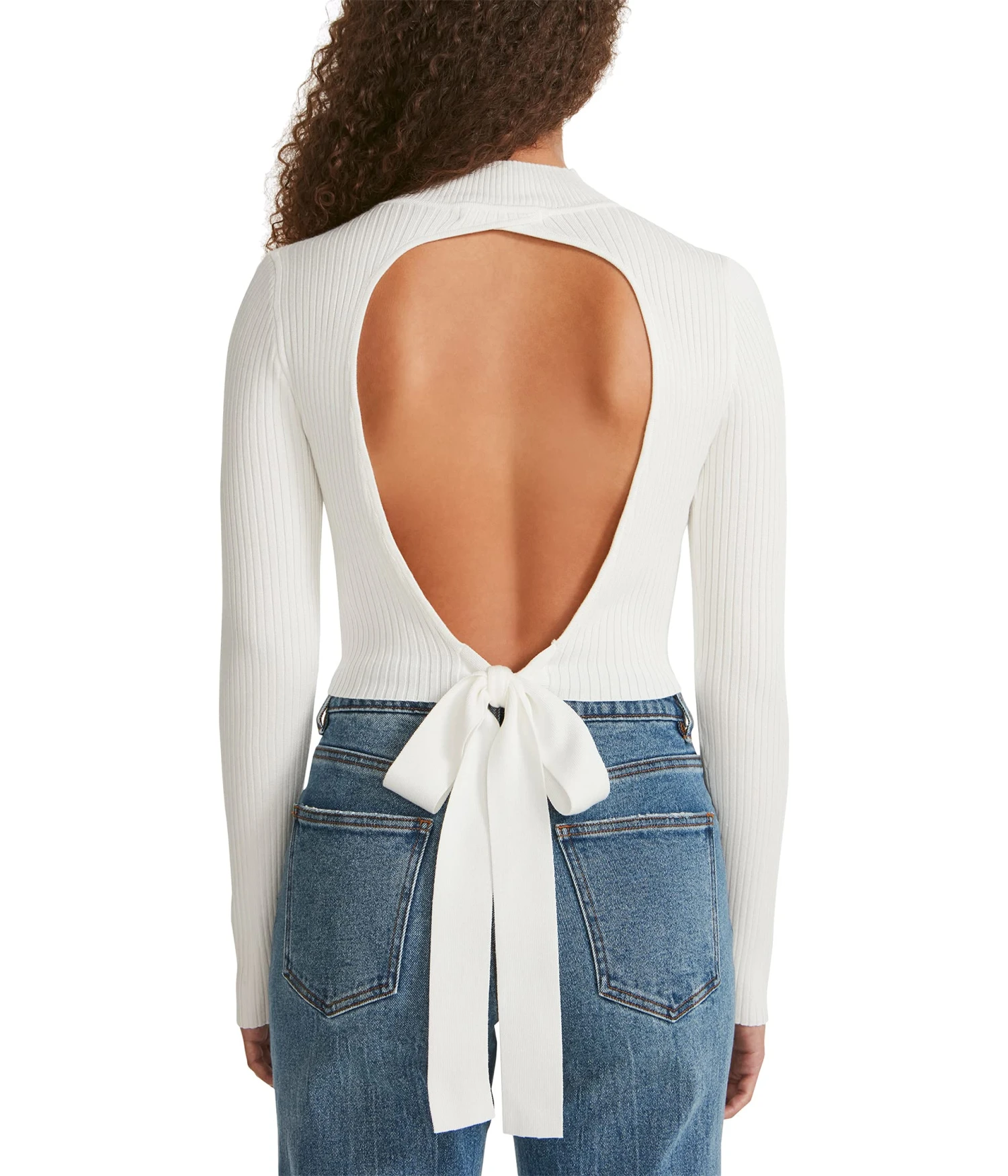 - Make a statement in the Madden Girl® Fine Gauge Rib Mock Neck Open Tie Back Sweater. Pair with your favorite denim for head-turning style.