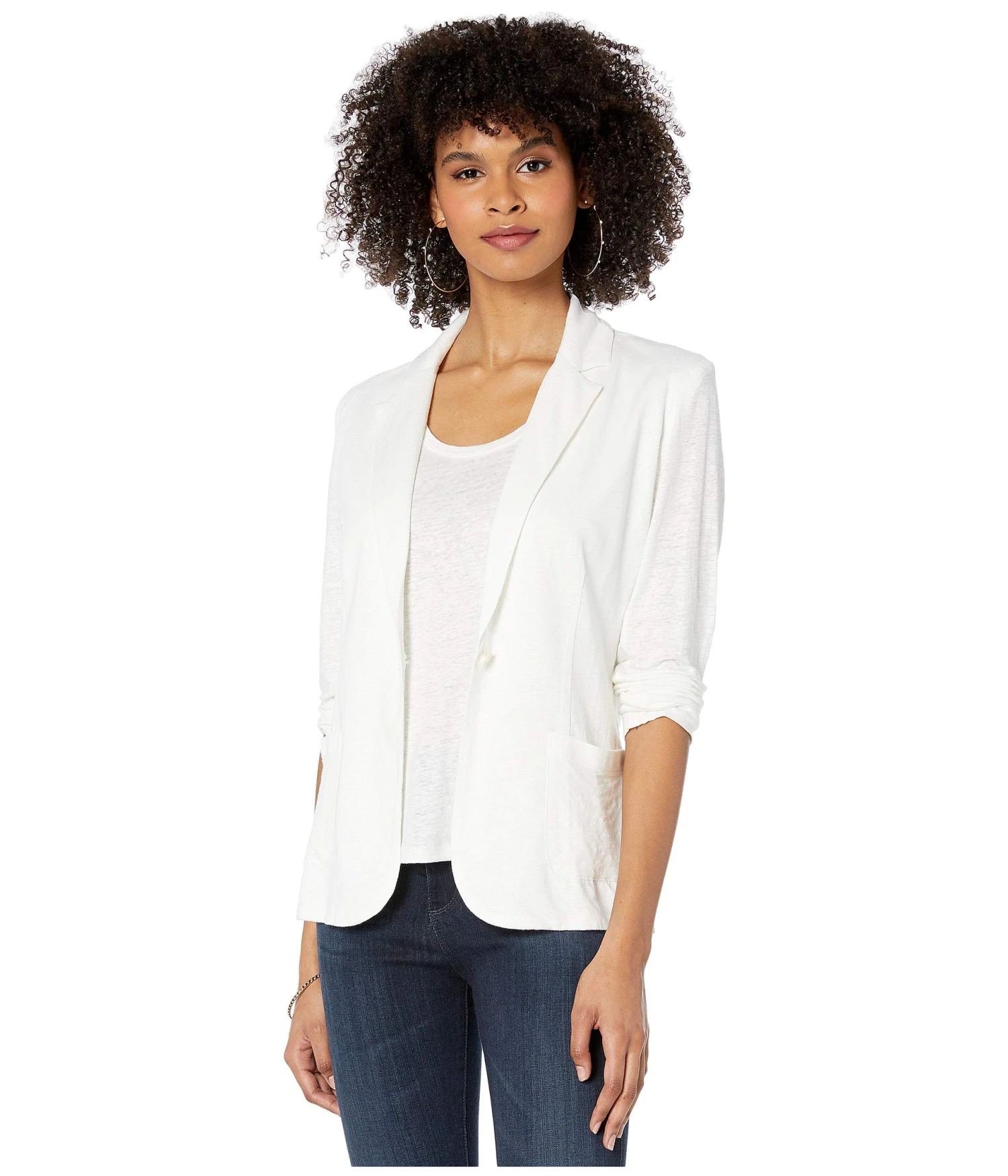 - Bring this lightweight stretch linen Majestic Filatures⢠blazer for a perfectly polished addition to any look.