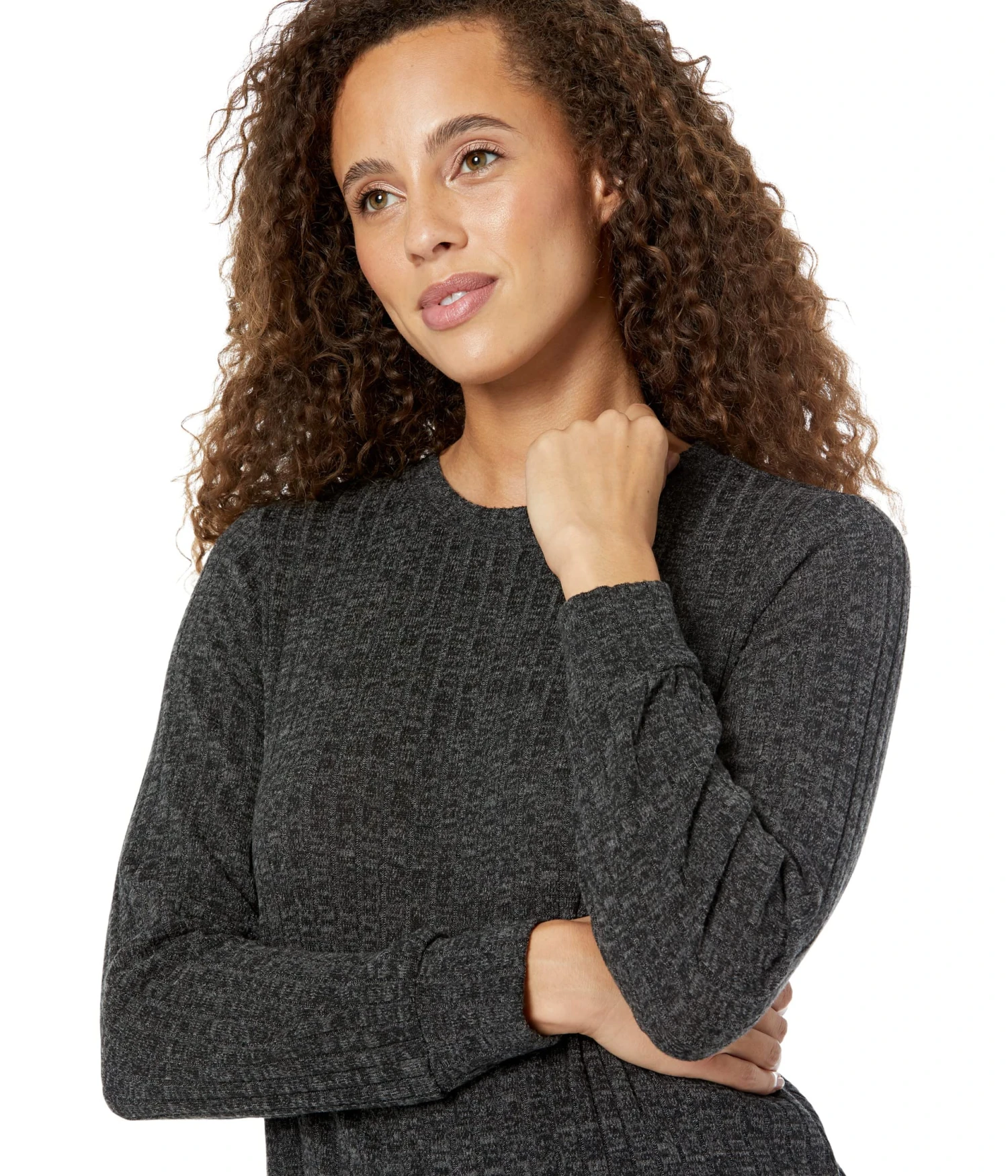 - Dress up casually and comfortably wearing Mod-o-docâ„¢ Brushed Hacci Long Sleeve Crew Neck Flowy Top.