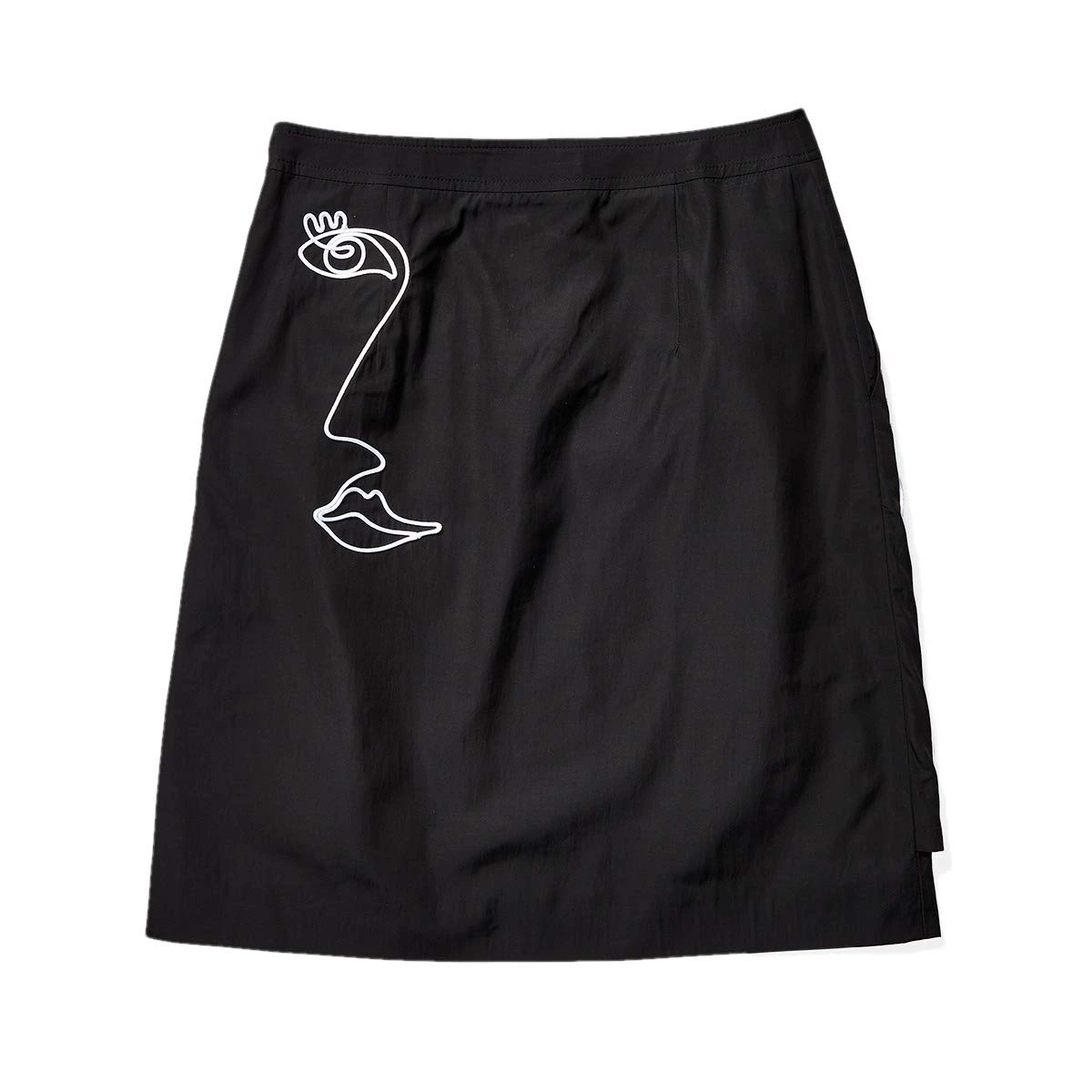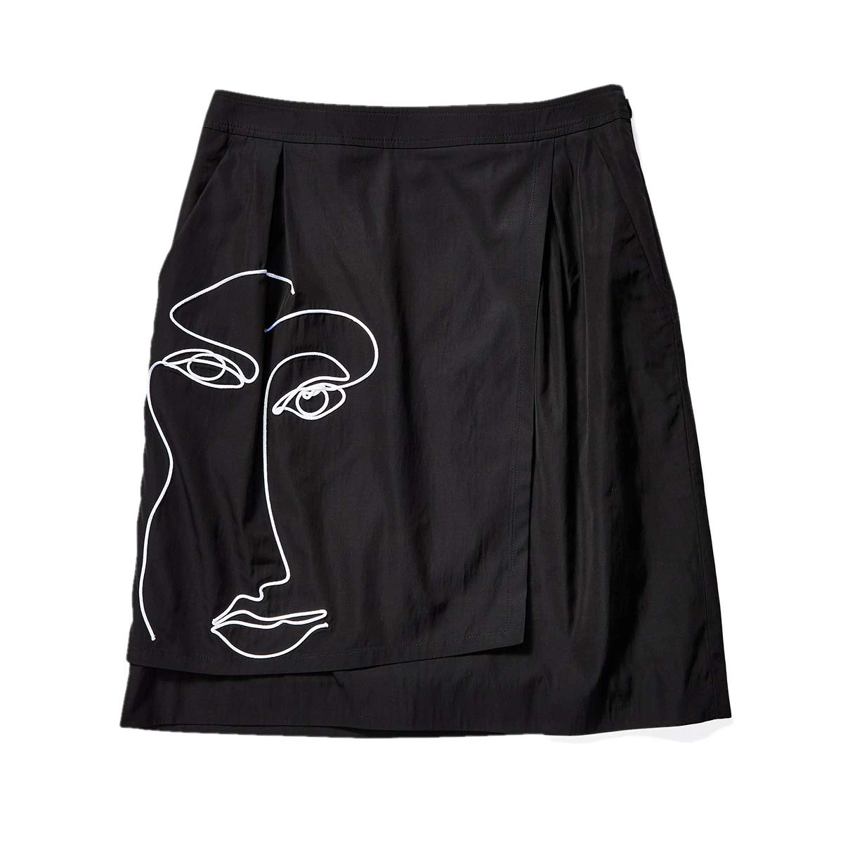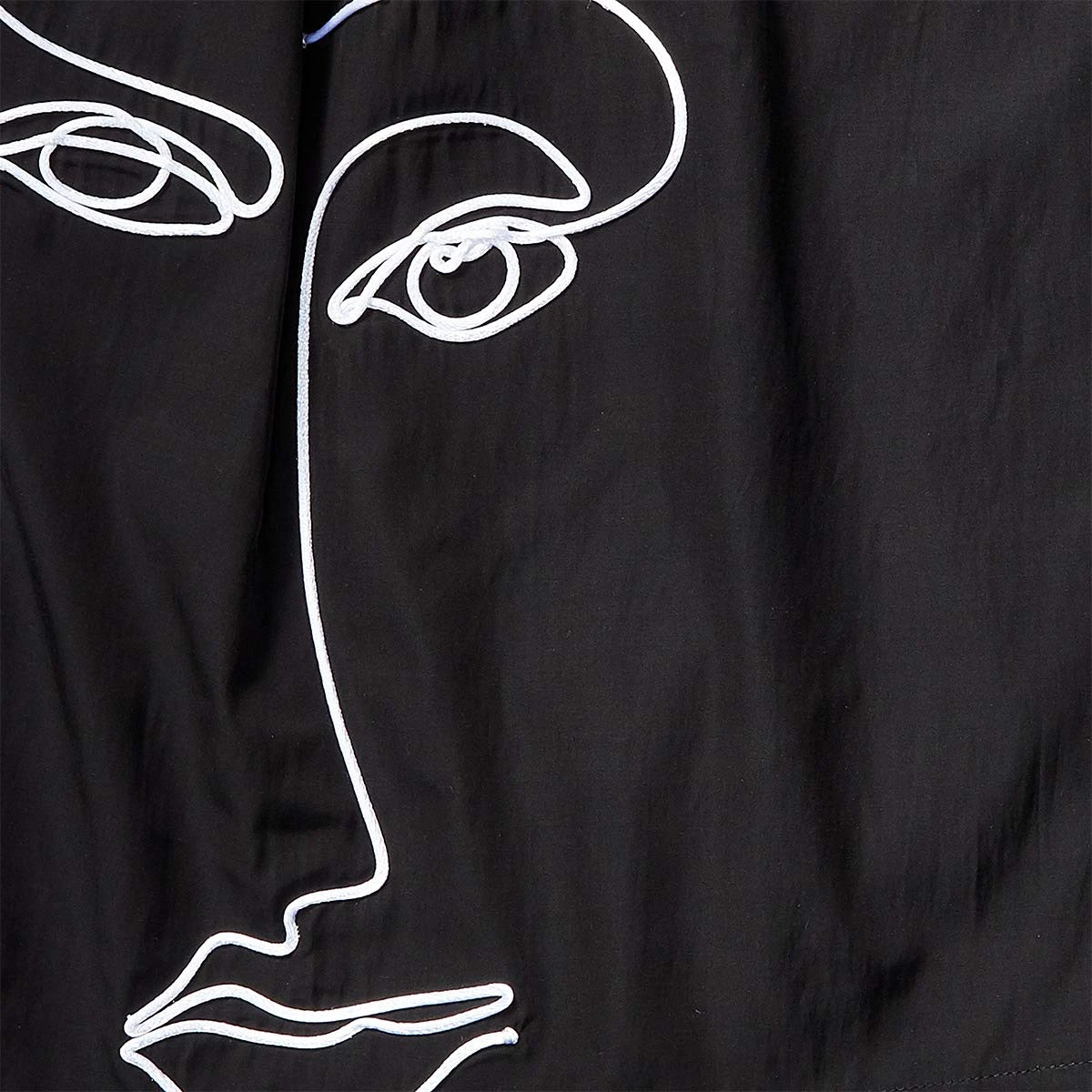 - Embroidered face at the hip.