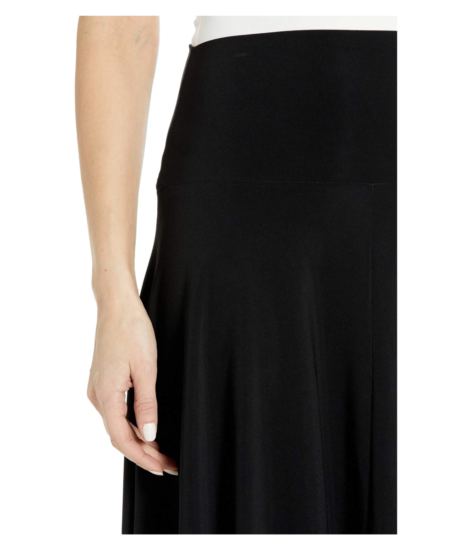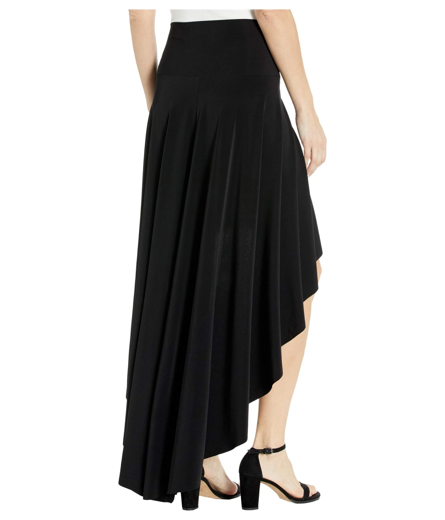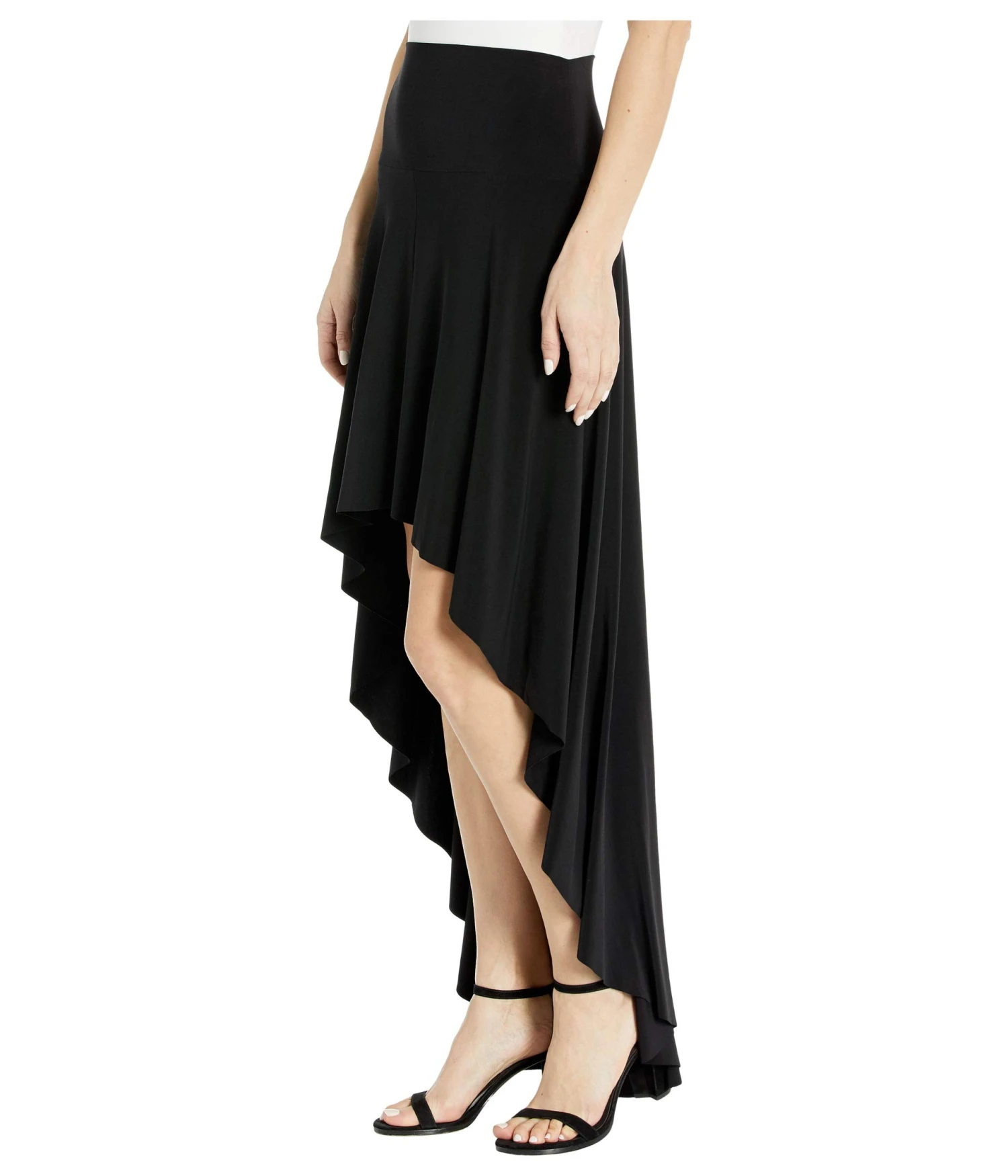 - A dramatic high-low hemline creates a stunning look to this KAMALIKULTURE by Norma Kamali skirt. A matte stretch jersey fabrication is ideal in a dark hue.
