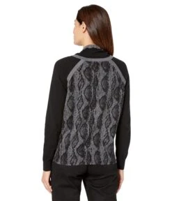 Elliott Lauren Snake Charmer Color-Block Printed Funnel Neck Sweater