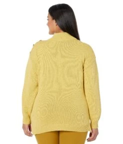 Elliott Lauren Need For Tweed Mock Neck Sweater With Button Detail On Shoulder