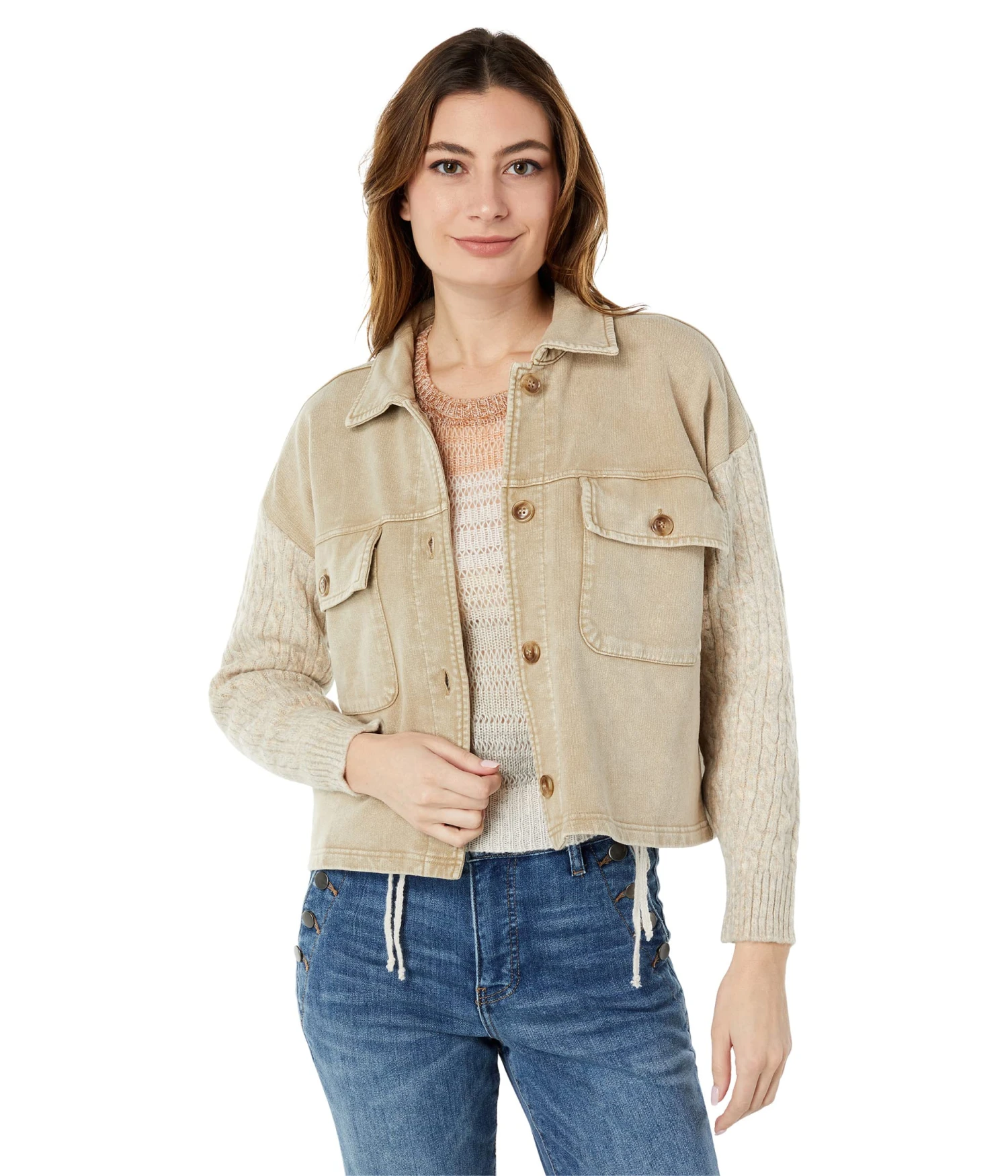- Button-flap pockets on the chest.
