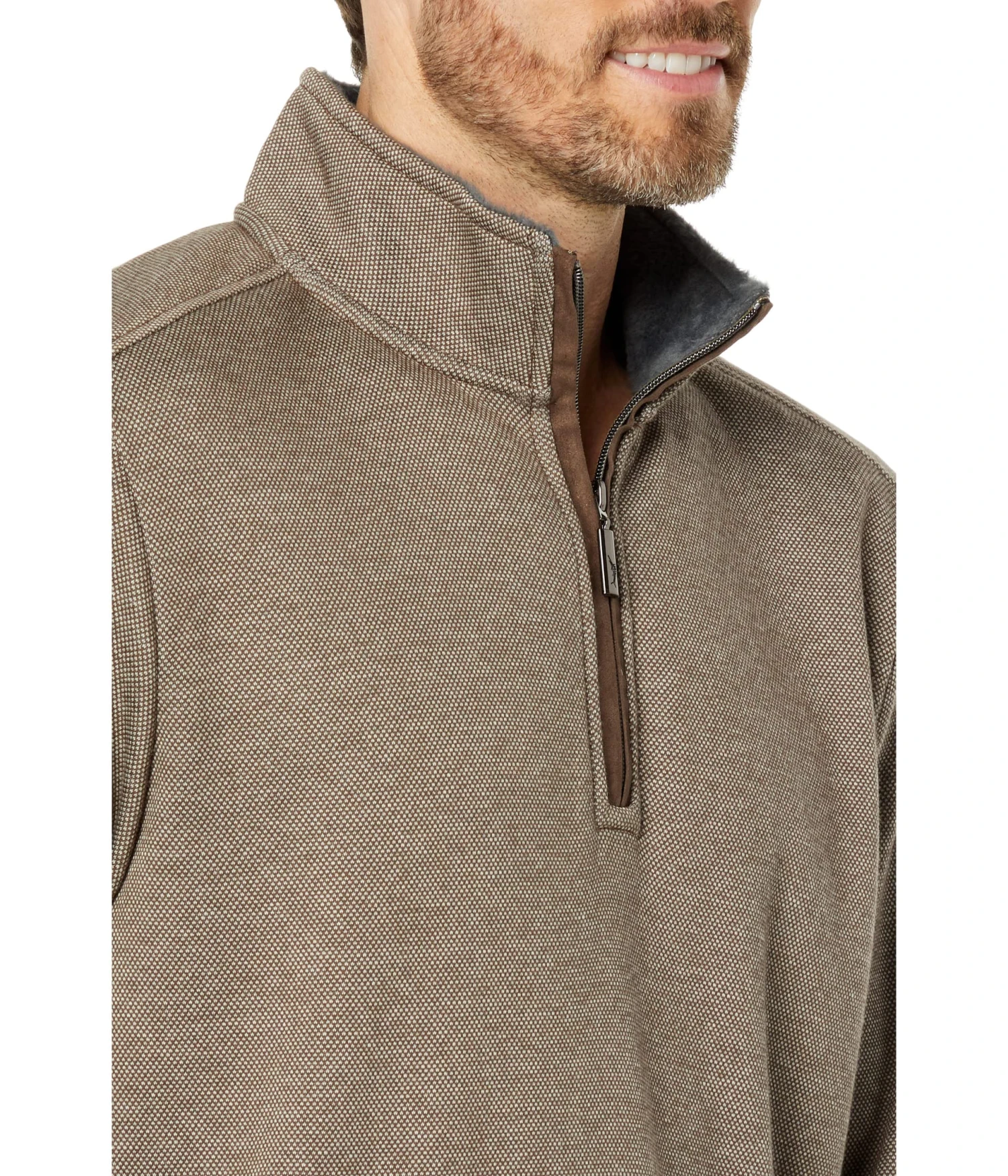 - Half-zippered closure.