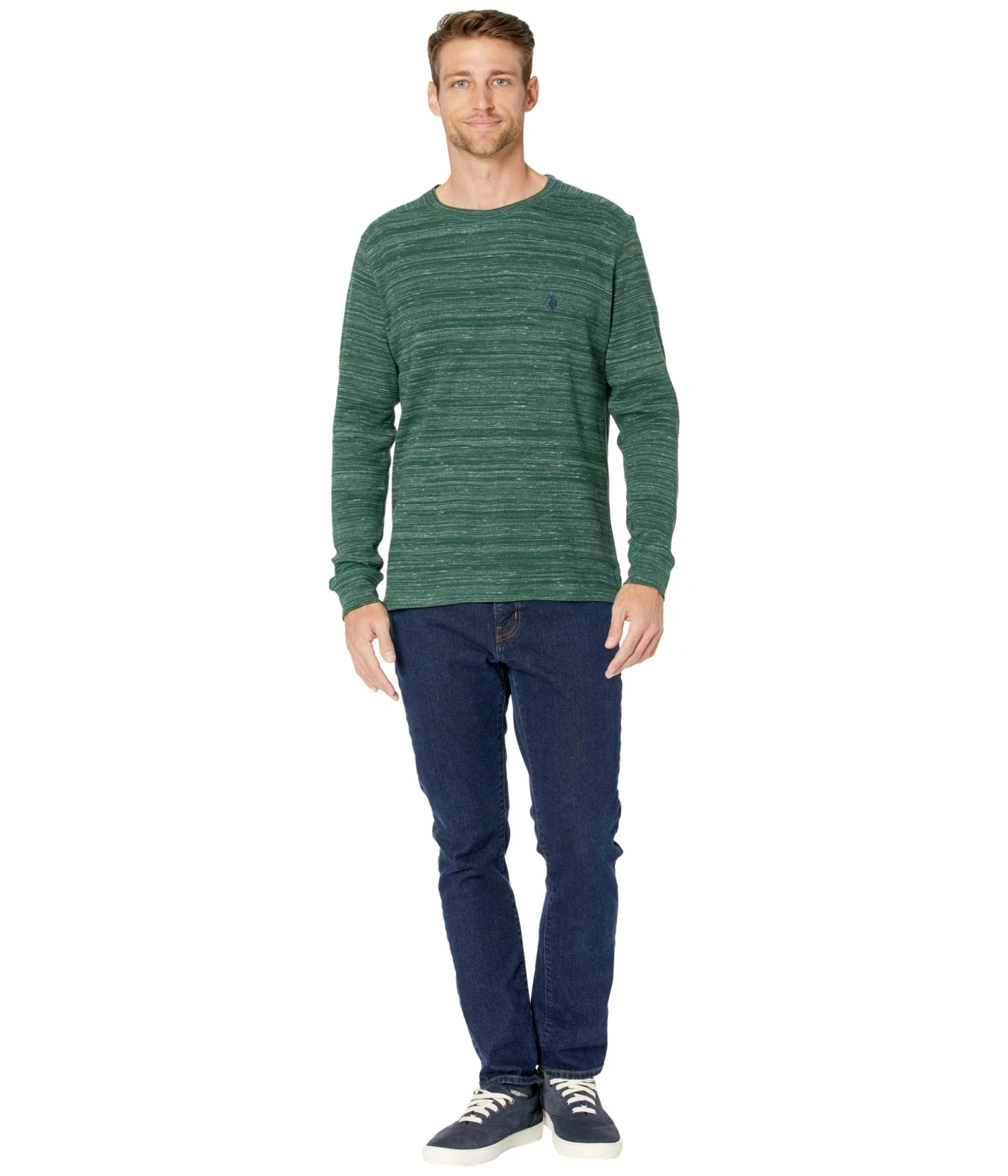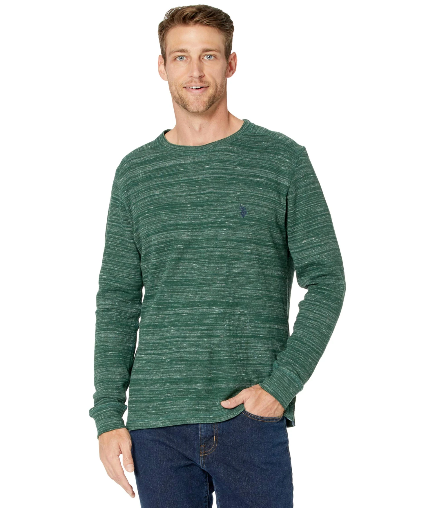 - A day of running errands never felt or looked so good wearing the cotton-blend U.S. POLO ASSN.® Long Sleeve Space Dye Crew shirt.