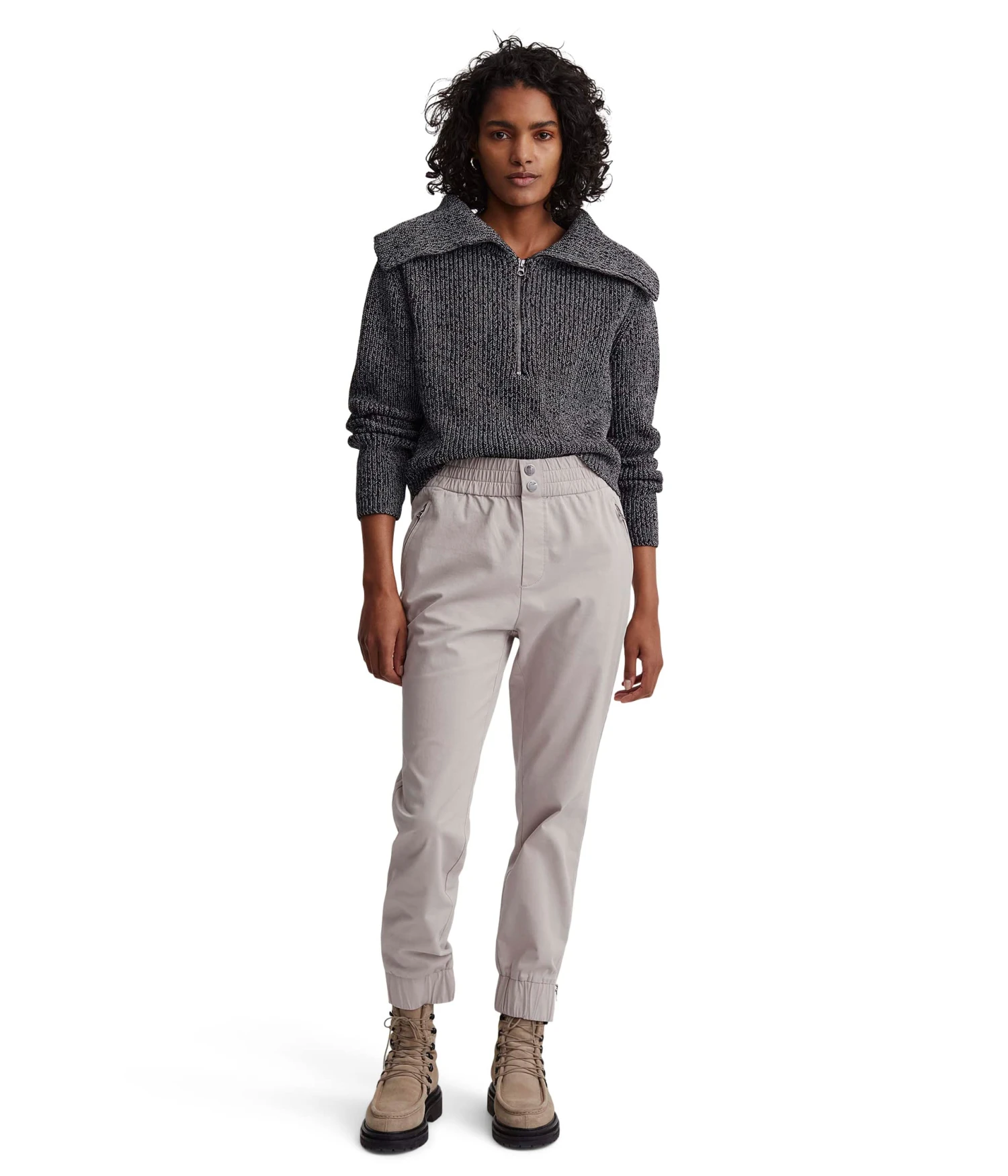 - Bring on a classy update to your cold-weather aesthetics by wearing the Varley Elise 1/2 Zip sweater.