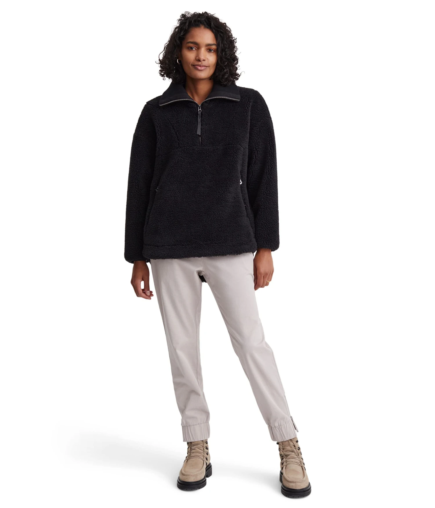 - Half-zippered closure.